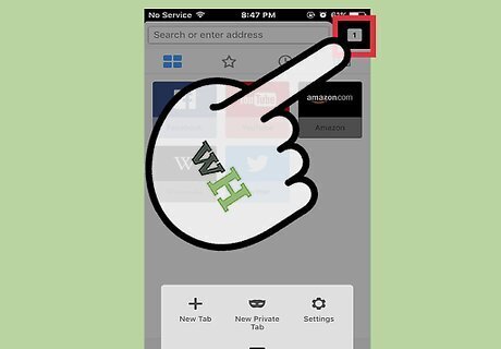 Click on the tab icon. This icon—a square with a number in it—is located in the very top, right corner of the screen.