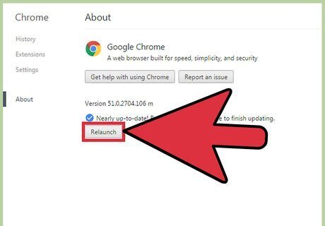 Click Relaunch to complete the update. You must quit Chrome to finish the process.