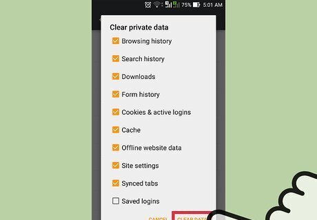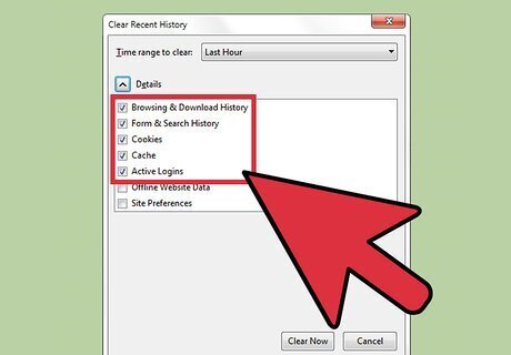 Select the type of data you would like to clear. Check the box next one or more of the following options: “Browsing & Download History” “Cookies” “Cache” By default, “Form & Search History” and “Active Logins” will also be selected. You can uncheck the boxes next to these two options if desired.