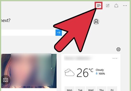 Click on the Hub icon. This icon looks like a paragraph of text. It is located to the right of the search bar.
