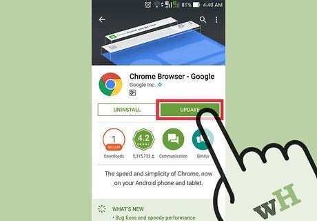 Update Google Chrome for Android. Launch the Google Play Store. Click the menu button (three dots in a vertical row)—find this button in the very top, right corner of the screen. Select “My Apps” from the drop-down menu. Scroll through the list and search for a Google Chrome update. Press “Update”.