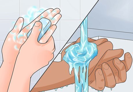 Keep clean. Be sure to wash thoroughly if you come into contact with an allergenic or irritating substance. Treat the area with cool water and soap for at least 25 seconds and then rinse again. Try to remove as much of the substance as you can, as fast as you can, in order to avoid a repeat reaction. Wash the area with Dial brand soap, GOOP (a grease removing agent), or Tecnu as these have been shown to be effective in binding to urushiol (the oil in plants that causes allergic reaction) for more thorough removal. Be sure to wash under the fingernails, too, especially if you have been scratching. Consider an after-work cream, as well, if you can’t totally avoid contact with an irritating or allergenic substance. These are designed for use after work to calm your skin and reduce the frequency and severity of reactions.