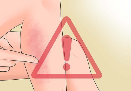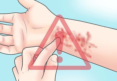 Beware of sudden rashes. Contact dermatitis usually shows up when you’ve been touched by a substance that triggers a reaction, like poison ivy or oak or latex gloves. The rash usually will crop up suddenly, within hours of contact. It may also last for two to four weeks. There are two basic kinds of contact dermatitis, allergic or irritant. Allergic dermatitis occurs when you have contact with an allergenic substance and it produces a delayed reaction. This may develop over a period of 48 to 96 hours, or it may take even longer, between seven and 10 days after the first exposure. Allergenic contact dermatitis can also cause oozing blisters, intense itching, and sometimes swelling in the face, eyes, or genitals. Irritant contact dermatitis occurs when skin comes into contact with an irritant, like a detergent or solvent. Skin damage may be permanent if the irritant is powerful, like acid or lye soap. This kind of dermatitis may also cause mild swelling, itching, blisters, painful ulcers, or tight-feeling and cracked skin. If you note a rash and think you may have come into contact with a plant like poison oak, ivy, or sumac, make sure you wash everything that may have been in contact with the plant with cold water. This includes clothing, gardening tools, sports equipment, and pets.
