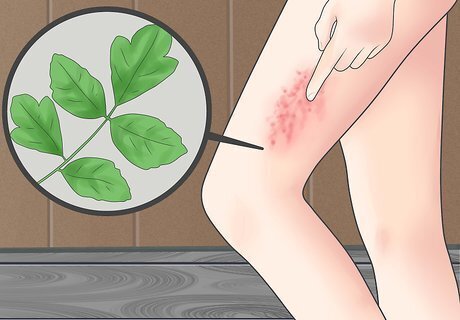 Focus on the affected area. Pay close attention to the area that is irritated and to anything around it. The culprit may be a substance you touched, triggering a reaction, or it might be a fabric, plastic, or metal item that is coming into contact with the skin. The rash’s location will often suggest a cause. If you’ve been handling an irritant like a mild solvent and develop a rash on your hands, for example, the solvent is probably the cause. Were you walking outdoors and then got a rash on your legs? You might be dealing with contact dermatitis from poison ivy, poison oak, or poison sumac. People sometimes develop dermatitis from allergies to fabrics, plastics, or metals. A plastic wristwatch band can cause a reaction, for instance.