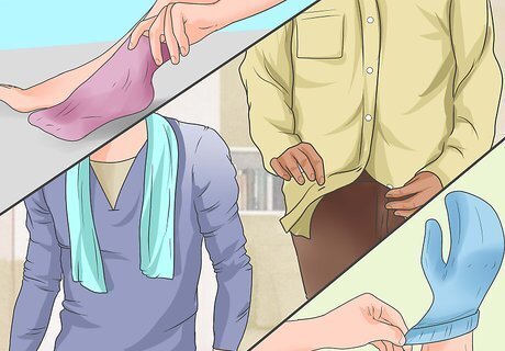 Wear protective clothing. Clothing can form an effective physical barrier between your skin and irritants and help prevent repeat contact dermatitis or if you have had issues with photoallergic reactions to sunlight. Use basic protection: long pants, long-sleeved shirts, and boots can go a long way, whether against chemicals, plants, or other substances. Consider using gloves. Irritant contact dermatitis often affects the hands, so gloves are an easy way to reduce contact. Use cotton gloves if you have an allergy to latex or rubber. Take your gloves off periodically, too, as sweat can aggravate dermatitis symptoms. Follow all safety instructions on protective equipment if you work with irritants.