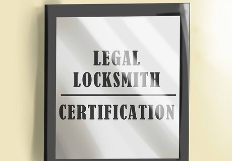 Find out the legal requirements for your state. Some states require bonding, licensing, insurance and certification. Requirements vary from state to state. Even if they're not required, bonding, licensing and certifications add credibility and help to protect you from liability. Your local government or state Attorney General can tell you how to start a locksmith business legally.