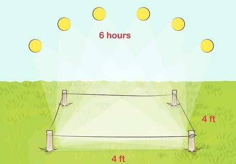 Choose a small site for your organic garden. Think small, especially at first. Find a spot in your yard that gets at least 6 hours of sun a day. A well-maintained 4 ft × 4 ft (1.2 m × 1.2 m) garden can furnish all of the fresh vegetables that one person will eat. Even a window box or a few containers can be a starter garden.