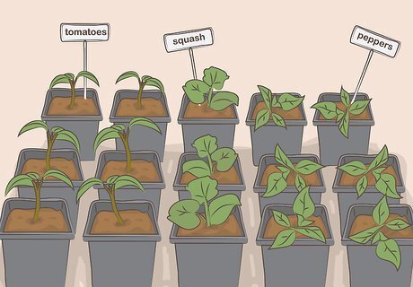 Plant your seedlings in full sun after the last frost. Plant seedlings into your organic, compost-rich soil and set them in areas where they'll receive full sun: at least 6 hours a day. Plant thickly to prevent weed growth. Companion plantings can fill in spaces in vegetable gardens, too, and will help you make the most of a small space. Spaces that are planted thickly enough will discourage weeds from growing between plants that you want.