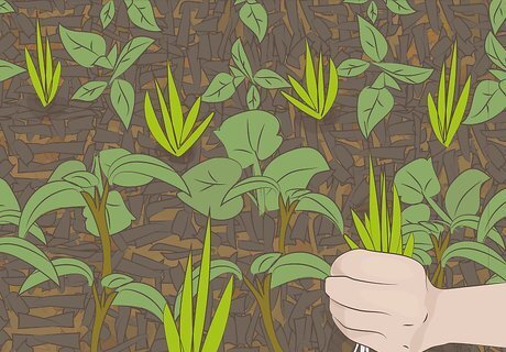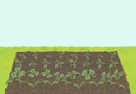 Mulch areas around plants 2 in (5.1 cm) deep. Organic mulches, including bark, wood chips, and grass clippings, gradually break down and enrich the soil. In the meantime, they control weeds, help to moderate soil temperatures, and slow evaporation, meaning that you can water less.