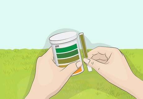 Test the pH of your soil. Test the pH of your soil by buying pH test strips from a garden store. Stir a handful of soil with lukewarm distilled water until it's the consistency of a milkshake, then dip the pH test strip in. Hold it there for 20-30 seconds, then compare the strip to the test kit's key. The pH (acidity versus alkalinity) of your soil should be somewhere between 5.5 to 7.0 for plants to thrive. If your soil is too acidic (below 5.5), buy dolomite or quick lime to add to the soil, then retest. If your soil is too alkaline (above 7.0), add more organic matter, like peat moss or compost, then test the soil again.
