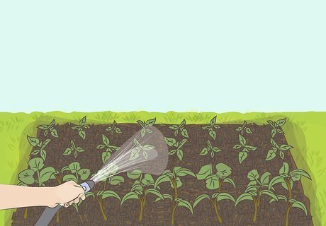 Water your garden in the morning. Water in the morning, when the temperature is cool and there's less risk of evaporation, which will deprive your plants of water. Watering in the evening isn't ideal, as it keeps your plants wet overnight and encourages mildew. It's still preferable to watering in the middle of the day, though.
