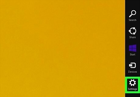 Click Settings Windows Settings. It's the icon that resembles a gear in the charms menu to the right.