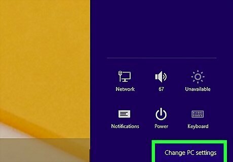 Click Change PC Settings. It's at the bottom of the Settings menu on the right.