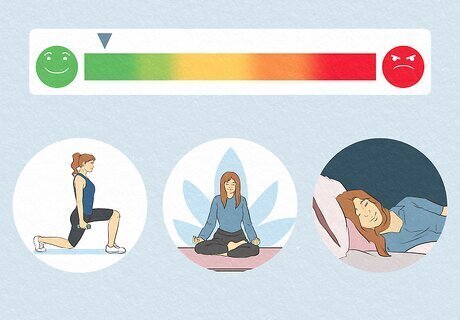 Manage your stress levels. People with narcissistic tendencies often have a hard time managing their emotions, so their symptoms may worsen when they’re feeling extra stressed-out or overwhelmed. Therapist Rebecca Tenzer, MAT, MA, LCSW, CCTP, CGCS, CCATP, CCFP agrees that doing “stress-reducing practices can improve self-regulation and emotional awareness” and help keep you from lashing out. Here are some ideas to help you de-stress: Exercise regularly. Physical activity releases endorphins, and it’s a great stress reliever. Start meditating on a regular basis to cultivate a sense of calm and peacefulness in your life. Consider doing yoga. It blends calm, meditative practices with physical activity, making it super effective for stress relief! When you’re sleep deprived, your mood and stress levels can suffer, so make sure you’re getting enough sleep (7-9 hours per night).