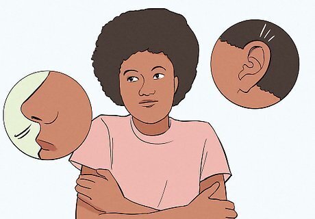 Ground yourself if you lose touch with reality. Fear can make you feel out of touch with the here and now. Ground yourself in the present by reconnecting with your 5 senses. Look around you and find 5 things you can see, 4 things you can touch, 3 you can hear, 2 you can smell, and 1 you can taste.