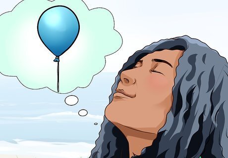 Try visualizing the thoughts away. Try stopping racing thoughts by visualizing them going away. Think of each thought as something separate. Then, come up with a way you can get rid of the thought. This might be like a leaf on a stream, letting go of a balloon into the sky, or a cloud floating by in the sky. For example, when a thought comes into your mind, imagine putting it on a balloon. In your mind, let go of that balloon with the thought and let that thought drift off into the sky. Do this to each thought as you let go of them.