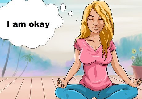 Focus on your breath. Deep breathing can help reduce your stress, and focusing on your breathing can help calm racing thoughts. Start by taking deep breaths and concentrate on your inhales and exhales. Feel your abdomen expanding and breath entering your lungs. Concentrate on the sensations as the air is pushed out of your body as you exhale. Do some breathing exercises. This can help calm you and distract your mind. As you inhale, count slowly to five. Hold the breath for a count of five. Then slowly exhale as you could to five. Do this five to 10 times.