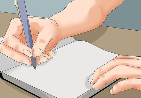 Write in a journal. Another way that you might be able to calm racing thoughts is by writing down those thoughts into a journal. This allows you to express the thoughts, but to let them go until a later time. Writing is an activity that helps you redirect your thoughts to the task instead of the worry. Write for a few minutes. See if your mind feels calmer. If you don’t feel calmer, try writing for five to 10 more minutes. Try writing your thoughts out by hand. Using a computer or tablet may negatively interfere with your sleeping.