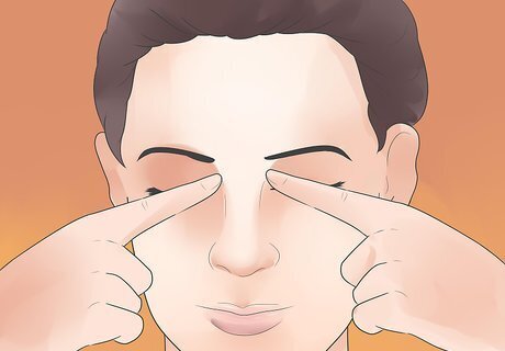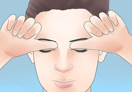 Try to give yourself a massage. There are two simple trigger points that you may choose to massage: the center of your eyebrows just above your nose and the sides of the bridge of your nose. Slowly apply pressure onto these trigger points. Push only until you feel discomfort or resistance in the muscle. Hold the fingers in place for 5 to 60 seconds or until the area being pressed feels numb. Push once more to increase the pressure until discomfort is felt. Do steps 2 ,3 and 4, three to four times on each trigger point. Each trigger point can be massaged three to six times a day.