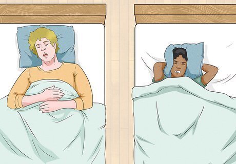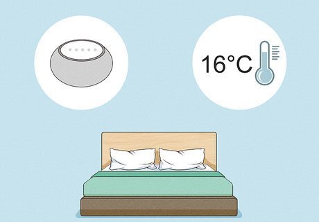 Transform your room into a cozy sleep sanctuary. Changing up your bedroom won’t directly stop your sleep talking, but it will improve your sleep quality overall. Experts suggest keeping your bedroom nice and dark, and setting the temperature somewhere between 60 and 67 °F (16 and 19 °C). If you can sleep comfortably without any disruptions, you might not sleep talk as much. Keep your room as quiet as possible, too. If there’s a lot of noise outside your room, close your doors and windows. You can also drown out sounds with a fan or white noise machine.