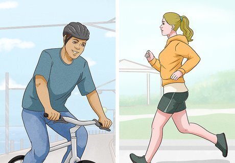 Get plenty of exercise during the day. Getting enough physical activity will improve your quality of sleep, which might make you less likely to sleep talk. Try to spend time outdoors during the day so you get a bit of sunlight, too. Aim for at least 30 minutes of moderate-intensity cardio per day. That could include things like jogging, swimming, or riding a bike. Don’t do any intense exercise within 1-2 hours of going to bed, since working out can initially cause a burst of energy that might keep you awake. Try to get it done earlier in the day.