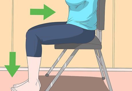 Sit in a chair with your back straight and your feet flat on the ground. While you can perform this exercise standing, it will be easier to start by sitting in a chair until your muscles get stronger. Find a comfortable chair, and keep your back straight and your feet flat on the ground while performing the exercise.