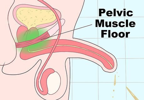 Stop urinating mid-flow to learn where your pelvic floor muscles are. The muscles you feel tightening when you stop urinating are the muscles that will be targeted to help reduce your incontinence. Knowing which muscles you are targeting will later help you when performing the "Kegel" exercise. Don’t stop the flow of your urine on a regular basis because it can cause bladder infections. As a reference, your pelvic floor muscles are the layer of muscles that support your pelvic organs. For men, these organs are the bladder and bowel. For women, these organs are the bladder, bowel, and uterus.