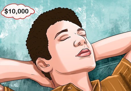 Start a visualization practice. Imagining yourself reaching your money goals or achieving financial stability may help you maintain momentum. Spend some time each day envisioning yourself achieving your goals. Close your eyes, take a deep breath, and relax. Call to your mind's eye that vision you'd like to accomplish, such as saving $10,000. See yourself depositing the money at the bank. Feel the excitement of reaching your goal. Activate all your senses in this experience. You can also look up specific visualization exercises on YouTube relating to money.