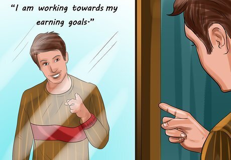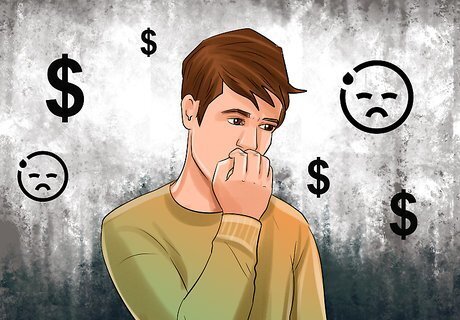 Identify and confront irrational money worries. Take some time to evaluate your worries about money and consider whether they really make sense. If you find yourself clinging to irrational beliefs about money, make an effort to replace them with more realistic or goal-oriented thoughts. Consider what your values are and what's really important to you. For example, you might find yourself thinking, “I would be happy if I just had more money.” Instead, focus on a specific goal, such as, “I would like to make enough money so that I can go on a trip to California next year.” If you think, “People will never respect me if I don't make enough money,” instead tell yourself, “I am not interested in gaining the respect of people who only care about money. I want to be around people who care about me for who I am.”