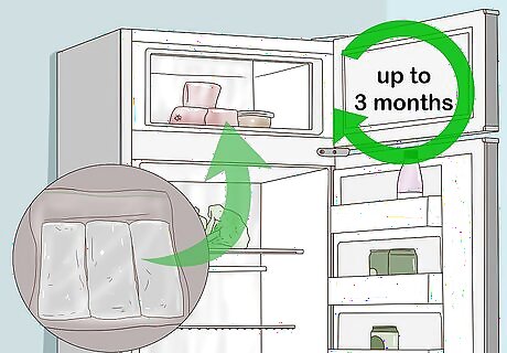 Store the banana bread in the freezer for up to three months. Write the date you made the bread on the plastic bag so you'll know how long it's been in the freezer. To eat a slice, remove the bread from the freezer and let it thaw at room temperature on a counter. After you cut yourself a slice, reseal the plastic wrap and aluminum foil around the bread and set it back in the freezer in the freezer bag. After three months the banana bread may develop freezer burn. If the banana bread has ice particles on it or looks discolored, it's most likely gone bad.