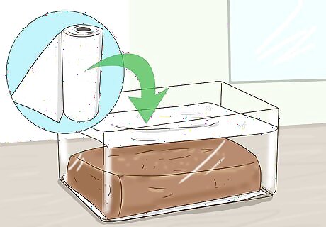 Place a paper towel on the bottom of a plastic container. Use a container that’s large enough the hold the banana bread. If you don’t have a plastic container, use a sealable plastic bag instead. Lay the plastic bag on its side and put a paper towel inside.