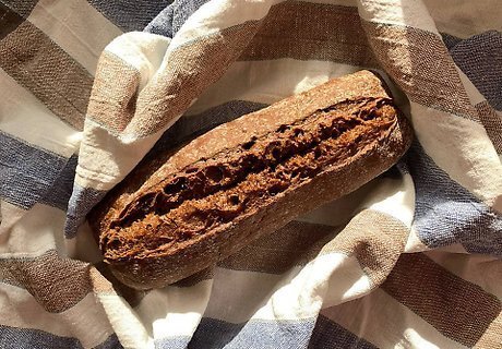 Both trap the bread's natural moisture to keep it from drying out. If your store-bought bread came in paper wrapping, toss it out and wrap it in plastic or aluminum foil to store it. Keep sliced, processed bread that's been wrapped in plastic in its original plastic packaging. This helps the bread retain its natural moisture. Store it in a breadbox overnight for maximum freshness. Some swear by leaving unsliced artisanal bread in the paper wrapper or even leaving it unwrapped on the counter with the cut side face-down. This retains the bread's crispiness, but it may cause the bread to go stale faster.