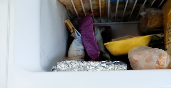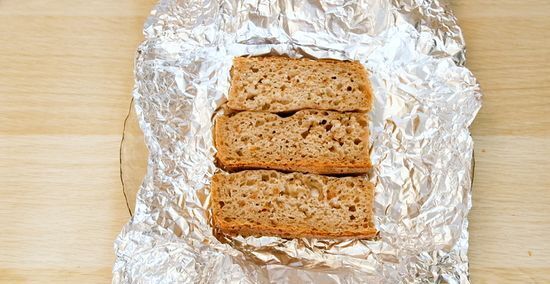 This method works for homemade and store-bought bread. Freezing your bread stops the starch in the bread from recrystallizing and getting stale. If you have more bread than you can consume within 2-3 days, the best way to store it is by freezing. Freeze store-bought and homemade bread in plastic freezer bags or heavy-duty foil, as lightweight household foil isn't suitable for freezing. Label and date it to prevent it from becoming a mystery cube. If it's homemade or unsliced, consider slicing your bread before you freeze it. That way you won't have to slice it while it's frozen or thawed, which can be pretty difficult.