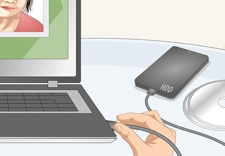 Use an external hard drive to back up your computer. Purchase an external hard drive and connect it to your computer using a USB cable. Drag and drop your photo files onto the hard drive, then eject it safely and disconnect it. For the most security, upload your computers onto 2 separate hard drives that aren't connected to each other. Hard drives provide more protection than just keeping your photos on your computer, but they can fail because of malicious hardware or human error. Always keep your photos on 2 hard drives or more in case one fails.