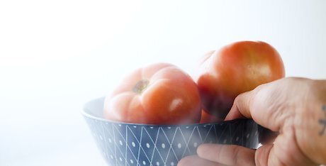 Place your tomatoes in a bowl or on a plate. Grab a clean bowl or plate and set it out on your counter. Place your tomatoes inside the bowl or spread the tomatoes out on your plate. You do not need to cover or wrap the tomatoes. If you’re storing your tomatoes in a bowl, make sure that your tomatoes aren’t stacked on top of one another. Pressure will bruise your tomatoes as they ripen. If your counter is clean, feel free to just set them out on the counter. A plate or bowl is a good idea if your counter is dirty or you haven’t sanitized it in a while, though.