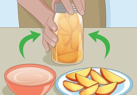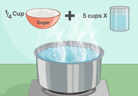 Make a sugar syrup. Mix 1 ¼ cups of sugar to five cups of water and bring to a boil. Let the water boil for at least five minutes to dissolve all the sugar. If you like your fruit a little sweeter you can always add more sugar to the syrup mixture.