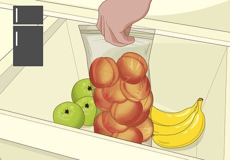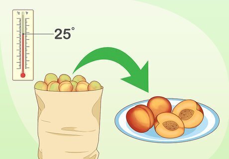 Store nectarines at room temperature until they’re ripe. Push down on the skin with your finger. If it’s soft and bounces back then it is ripe. They should also emit a fragrant smell when they’ve reached ripeness. If you need them sooner, put your nectarines in a paper bag to ripen faster. Nectarines produce a gas called ethylene which ripens them faster when stored in a paper bag. Putting nectarines in the fridge too early causes the flavor and texture to change drastically.