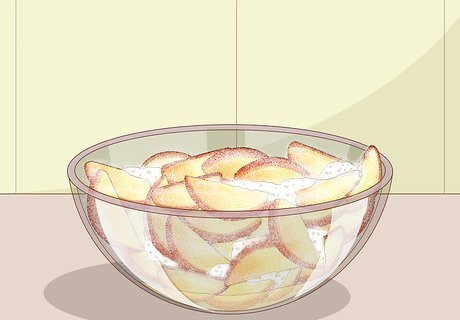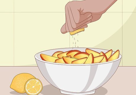 Cut nectarines in sizes that will serve you best. Slice your nectarines down the middle. Remove the pit. Cut the nectarines into cubes or slices. Toss the pieces in a bowl with lemon juice to prevent them from browning.