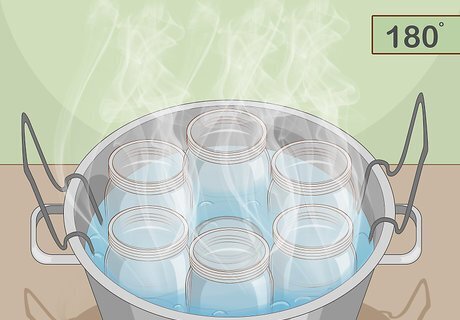 Prepare your water bath canner. You can do this while the syrup is heating up. Heat your jars, lids, and rings up to at least 180 degrees.