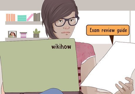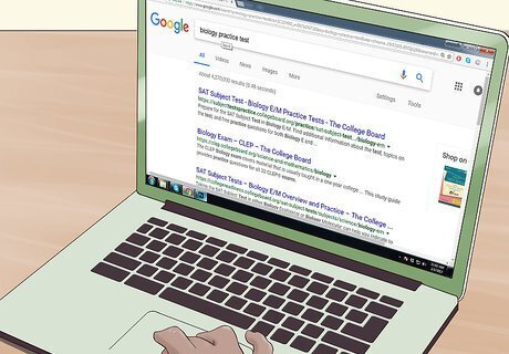 Take practice tests online. There are countless resources available to you online that you can take advantage of. Look up questions related to topics that you find particularly difficult. You can also look up study guides and other resources to help you study. You can also make your own practice tests. When you make your own practice tests, you're reviewing the material twice — once when you're writing the questions, and a second time when you're answering them. As you take practice tests, mark down which questions you definitely know the answer to. Then, you can skip over these questions during review to save yourself time. It will also show you how much progress you've made with your studying.