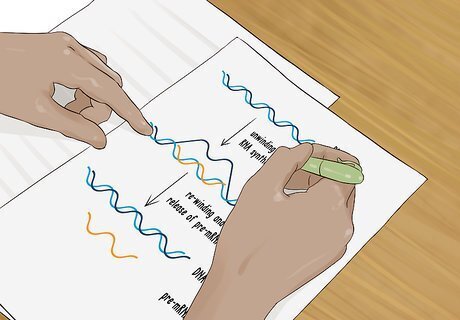 Sketch and label diagrams. Many concepts in biology are easier to understand and remember if you draw a picture. Review the diagrams present in your textbook and use them as a guide to draw your own. Read the captions of the diagrams to get a clear idea of what the image is representing. The process of transcription and translation is complicated, but it is easier to understand if you sketch the whole process. Draw as much as you can from memory and then check your sketch against the diagrams in the text. Clearly label everything on your drawings. Draw the DNA and all of the proteins involved in the process. Sketch the different sites on the ribosome involved in growing the protein with the various amino acids.
