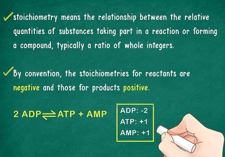Account for stoichiometric ratios. The study of stoichiometry focuses on relative amounts of chemicals as a reaction proceeds. You should be comfortable with this idea. The relative amounts of reactants and products will affect the rate that the reaction continues to a large extent. Acknowledge that reactions can proceed in the reverse direction (product back to reactants) under the right stoichiometric conditions. For example, there is too much product in the environment, so it begins to move back toward the original reactants.