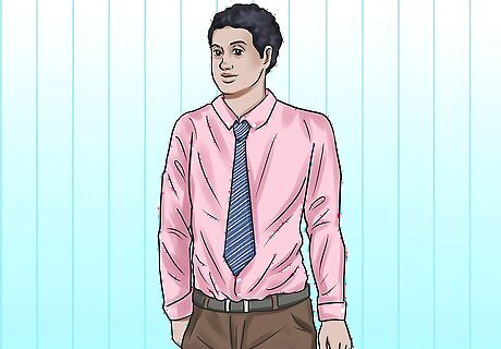 Match your shirt with a tie. While ties will naturally make the look a bit more formal, you can find more casual ties. Patterned ties look great with solid colored button-down shirts, and they are perfect for more casual settings. Even if no one else is wearing a tie, casual ties look like you put in the extra effort. They can add a lot to an otherwise simple look.