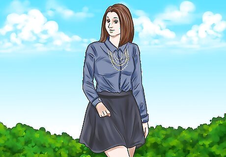 Tie your shirt up. You probably immediately think of a cowgirl tying up her flannel shirt, but this certainly isn’t the only look you can achieve by tying up your button-down. Unbutton two or three buttons form the bottom, and tie the two ends into a little knot. Try doing this with high-waisted bottoms, so that you don’t necessarily show skin but create a “cropped” look. Try tying up a button-down shirt over a dress. It is still modest, yet adds a bit of fun to an otherwise simple outfit.