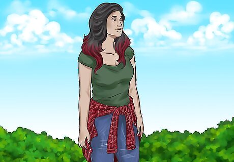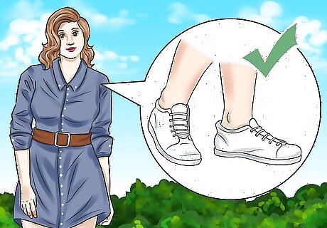 Tie your button-down shirt around your waist. This might sound a bit strange, but it’s a trend that has exploded. You can instantly add a pop of color to a monochrome outfit just by adding a brightly colored or patterned button-down around your waist. If you’re wearing a dress or loose-fitting outfit, tying a shirt around your waist can even accentuate your waist, making a flattering silhouette. Plaid button-down shirts are especially perfect for this look. Tie them around your waist with a pair of jeans and a solid top, and you look comfortable and trendy at once.