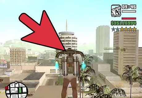 Ride the helicopter. Right after typing in the cheat codes, the helicopter will appear right in front of you. Approach it and press the player-assigned "Ride Vehicle" button.