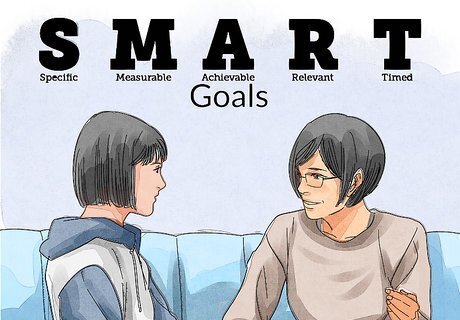 Teach goal-setting skills. The best goals are SMART: specific, measurable, attainable, relevant, and time-bound. Goal-setting is essential for achievement and staying on track in life. By setting goals, foster children can prepare for their future and build the skills necessary to find a job or go to college. Sit down with your foster child and come up with a few SMART goals to work towards. For example, your child may have the goal to "Get into college." Action steps that you come up with might be "Get letters of recommendation," "Turn in high school transcript," and "Submit college applications by deadline."