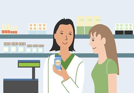 Purchase a biotin supplement from a pharmacy or health foods store. Biotin supplements are available without a prescription, but you should buy a supplement that works with the advice from your physician. Some manufacturers accommodate vegan and vegetarian diets, and many organic options exist, so there's no need to worry if you have special dietary needs.