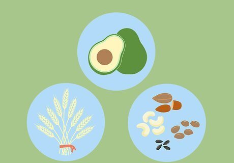 Add unprocessed biotin-rich foods like nuts and whole grains to your diet. Certain preparation processes and techniques, like canning or boiling, can cause biotin levels in foods to lower. Try to eat biotin-rich foods that can safely be consumed without being prepared in these methods, which would include vegetables and fruits (especially sweet potato and avocado) and nuts (like almonds and sunflower seeds). If you are having a salad for lunch, for example, add in different nuts, an avocado, or croutons to boost biotin-content. By adding these foods meals that are already biotin-rich, you'll be get the maximum amount of biotin out of your meals.