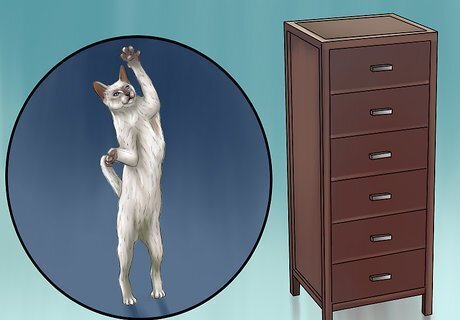 Give it things to jump onto. Javanese cats are lean and athletic enough to jump onto tall furniture with great ease. To minimize your cat’s inclination to leap onto the refrigerator, tall dressers, or door tops, provide it with other options. Purchase a tall cat tree from a pet store or set up a high-up hangout on a counter top or sturdy dresser with a small cat bed, comfortable pillow, or soft blanket. To make these spots appealing to your cat, spray them with catnip spray.